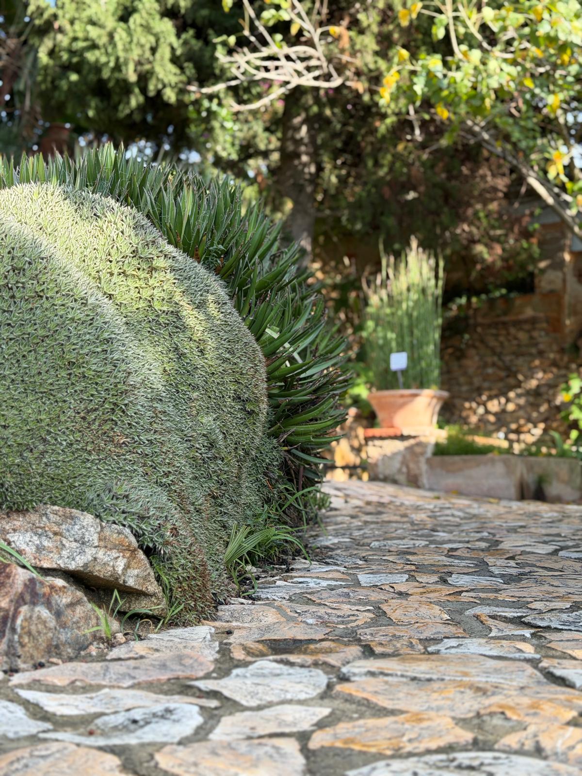 La Palette Végétale : Nous sélectionnons des spécimens rares et graphiques, tels que les Agaves bleutés, les célèbres « coussins de belle-mère » (Echinocactus grusonii) et des Broméliacées terrestres pour un sol tapissé de vie.